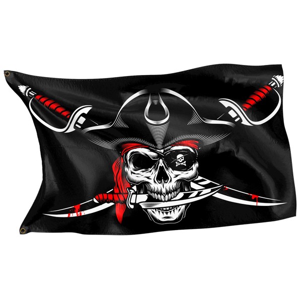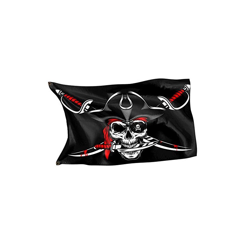 - Wind and weatherproof pirate flag, size 150 cm x 90 cm, double stitched with skull