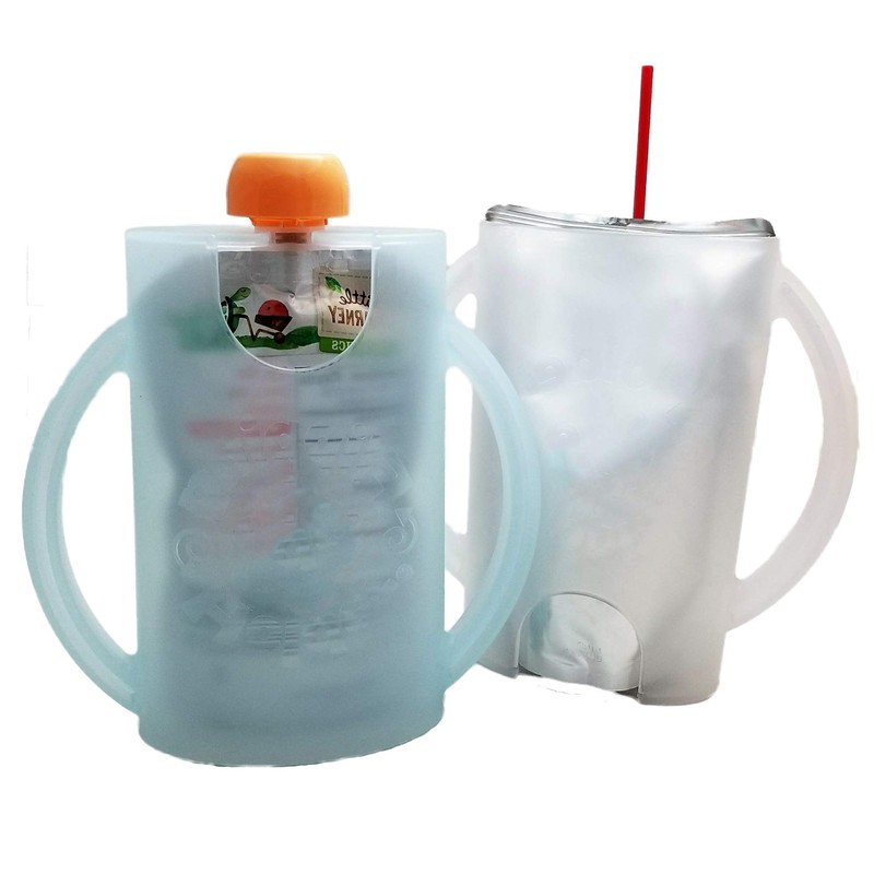 Original Squeeze Proof Flipping Holder 2-Pack with Open Bottom for Food Pouches & Juice Boxes - Multipurpose - Prevent Messes & Support Self-Feeding - Easy Grasping Handles - Made in USA