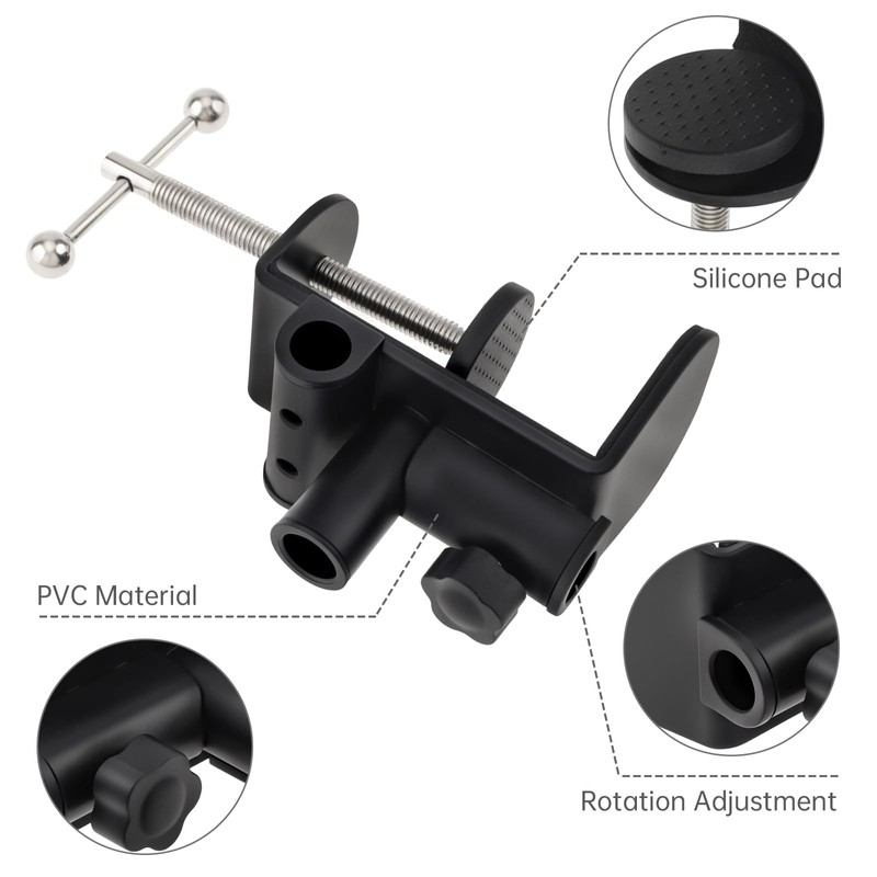 - Sturdy & Durable - The C-clip is made of aluminum alloy material, which has superior durability and strength, can firmly fix the lamp or microphone on the table.