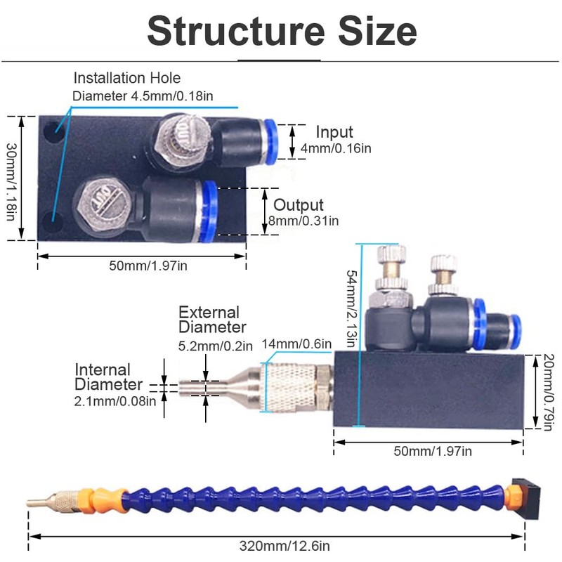 OriGlam Mist Coolant Lubrication Spray System for Metal Cutting Engraving Cooling Sprayer Machine for Air Pipe CNC Lathe Milling Drill