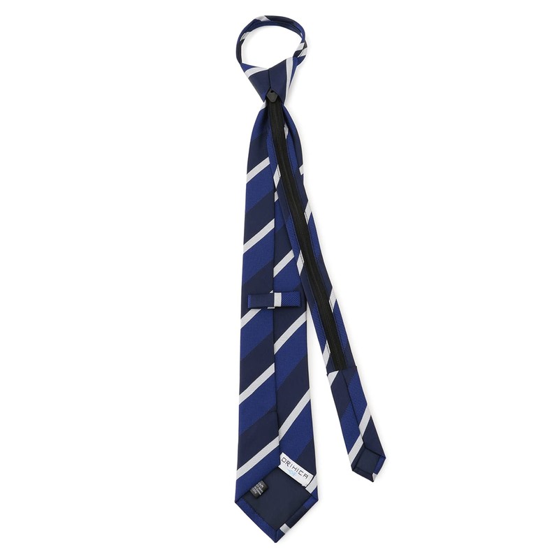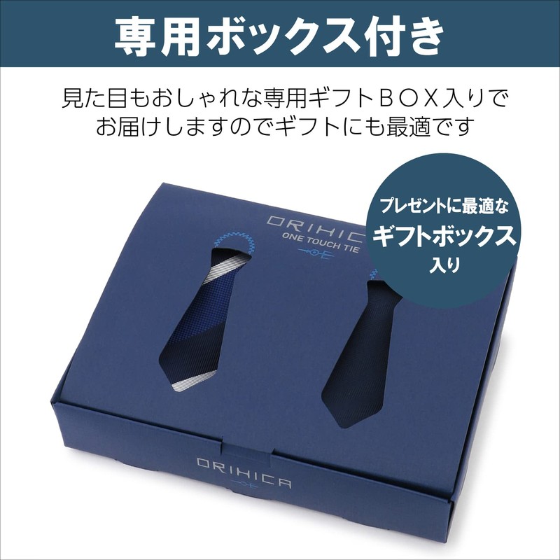 Orihika Men's One-Touch Necktie with Box, 2-Piece Set, Easy to Put on and Take Off Zipper Tie, Business Suit, Gift, Navy/Navy (AZZIP2-3)