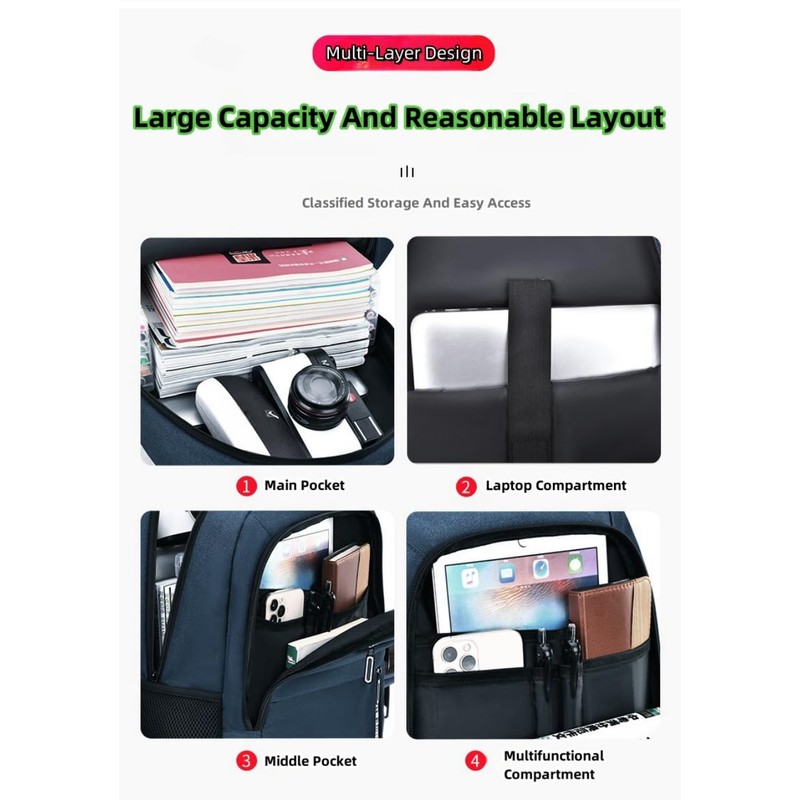 - ★LARGE SPACE MULTI-LAYER DESIGN: The main pocket has a large capacity, and there is a laptop compartment, and the middle pocket is designed with a multi-functional cabin to facilitate the storage of various items.