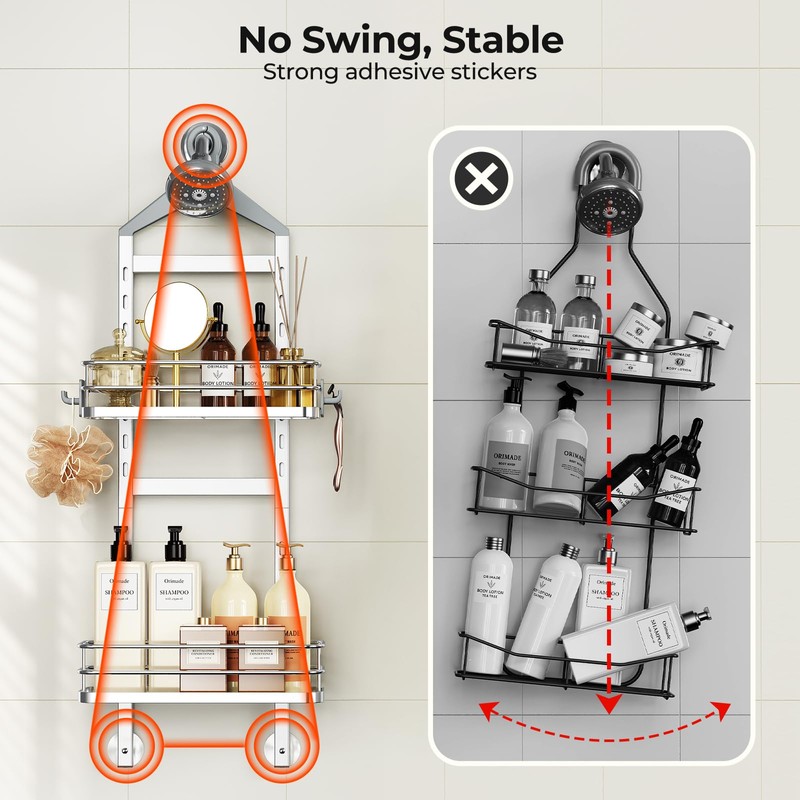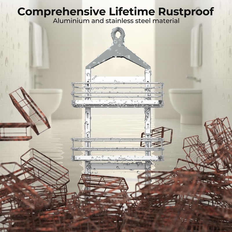 - Rustproof: The shower caddy is made of aluminium and stainless steel, which is comprehensive lifetime rustproof.