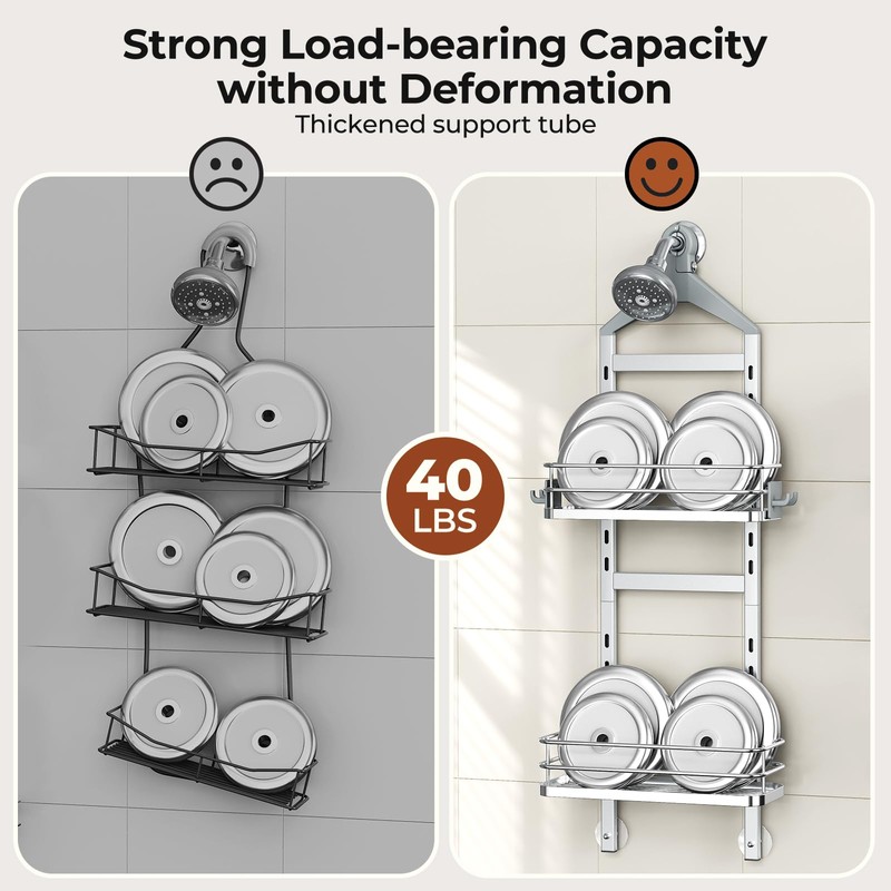 - Stays Put: Shower hanging head top inner ring has a circle of silicone material for non-slip,the outside has a screw locking,double fixation to avoid the shelf slipping or shaking. NOTE:The maximum applicable diameter of the round showerheads is 0.748-0.866 inch.