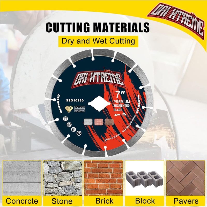 - 【CUTTING MATERIALS】:This segmented diamond blades are produced specifically excellent for wet and dry cutting concrete, brick, block, stone, masonry materials. Not recommend to cutting asphalt and green concrete
