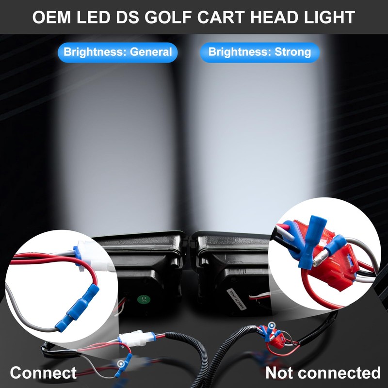 - ✅Benefits of Using LED Headlamps: 1. LED lights last much longer than the standard light bulb 2.Energy Efficiency: The LED light uses less energy. This means that LED headlights will consume less of your golf car battery’s energy, preserving the life of your batteries and allowing you to drive them longer on a single charge.3.Resistance to Temperature Fluctuation:Don‘t need any warming-up time so they perform better in the cold.