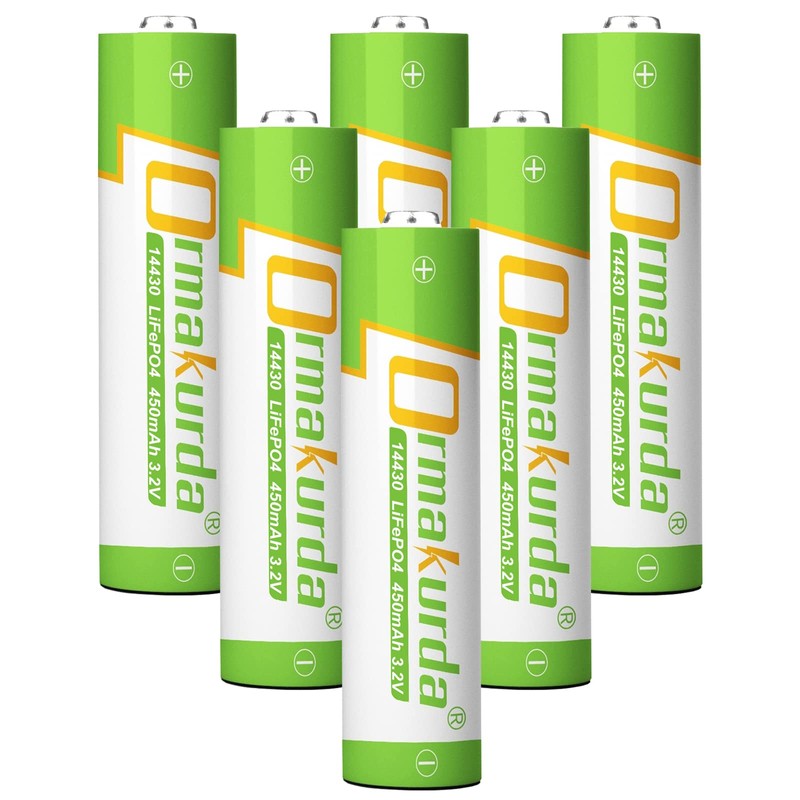 Ormakurda 14430 Rechargeable Lifepo4 Battery, 14430 LiFePO4 Rechargeable Battery 3.2V 450mAh for Solar Panel Outdoor Garden Lights (NOT AA Battery) -6 Pack