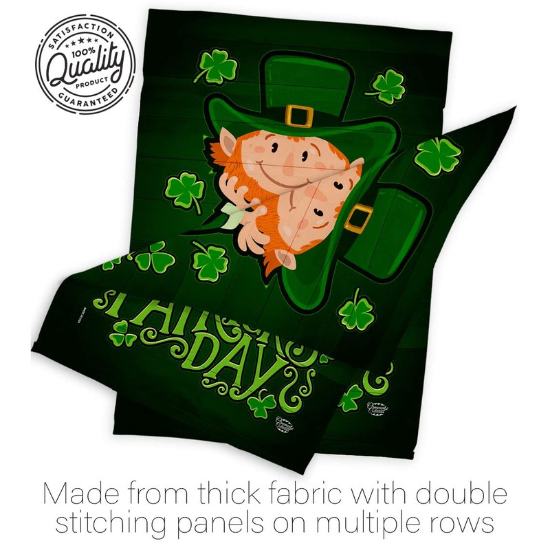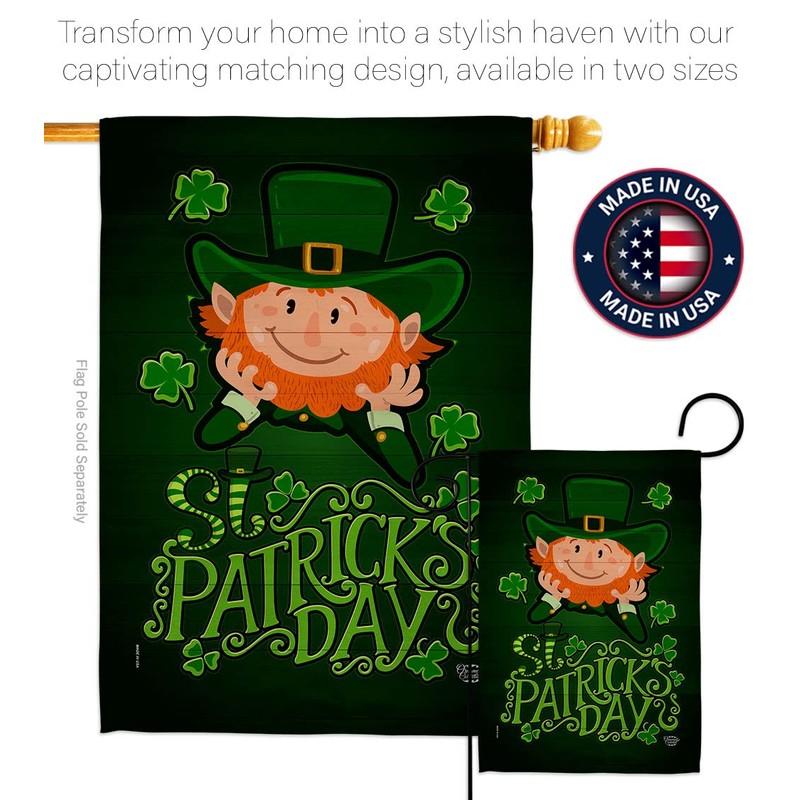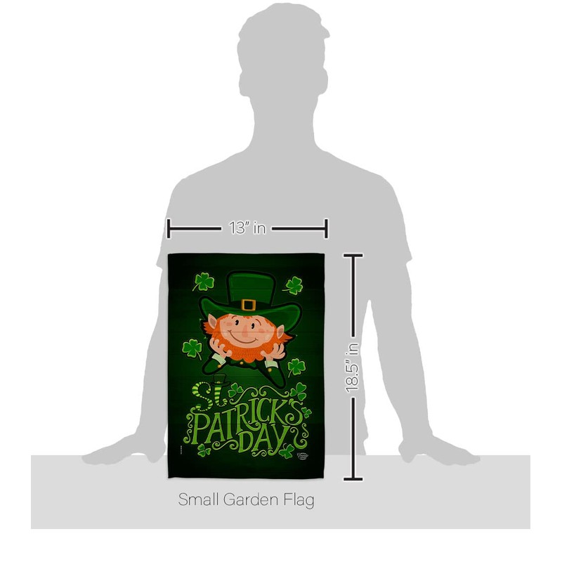 Ornament Collection Lucky Leprechaun Garden Flag Set with Stand Spring St Patrick Shamrock Coin Holiday March Irish Clover House Decoration Banner Small Yard Gift Double-Sided, Made in USA