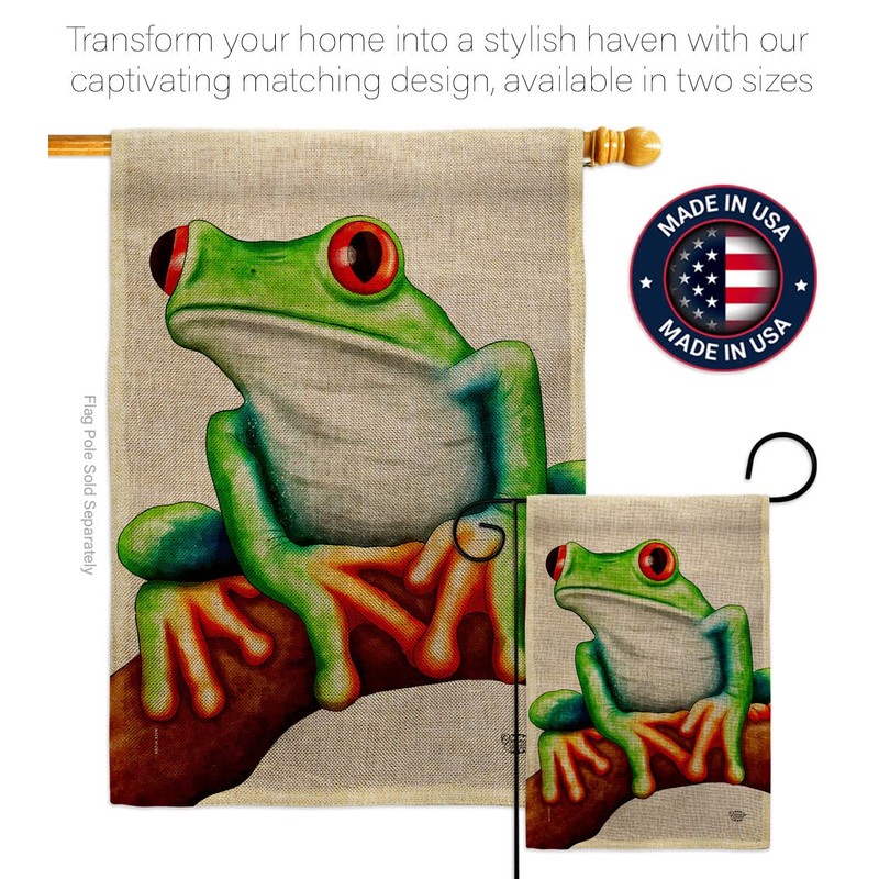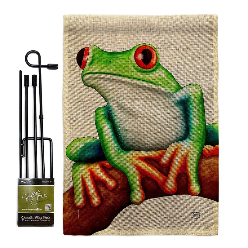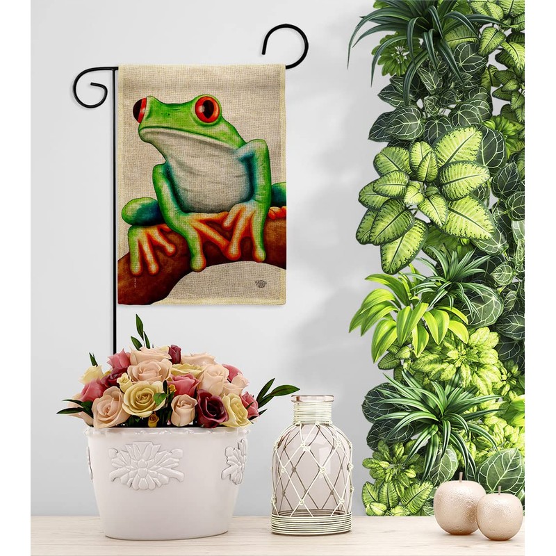 Ornament Collection Tree Frog Burlap Garden Flag Set with Stand Critters Bee Ladybug Animal Pet Nature Creature House Decoration Banner Small Yard Gift Double-Sided, Made in USA