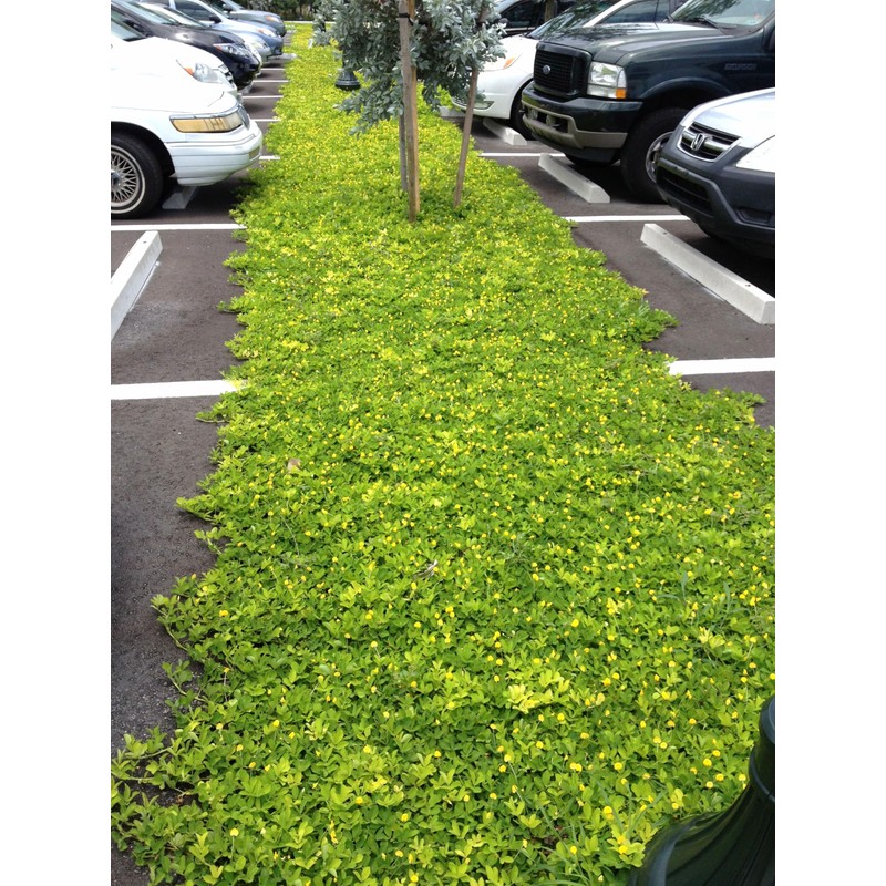 It can work not only as a complete lawn replacement but also in hard to mow areas like a small strip of lawn by a driveway. These groundcover plants thrive on easements or surround tall palms or upright trees.