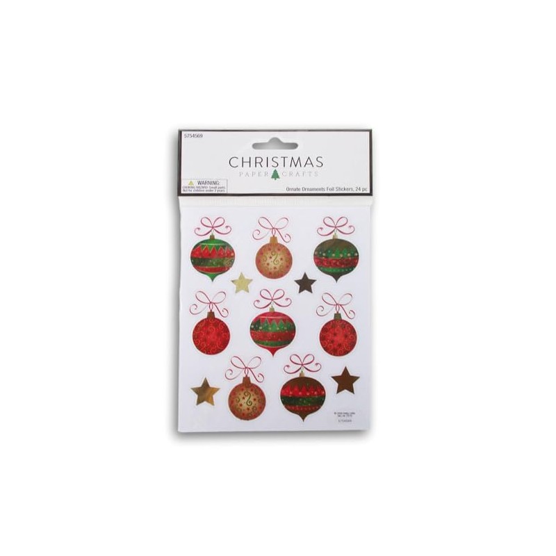Ornate Ornament Stickers - Colorful Foil Stickers for Crafts & Scrapbooks - 24 Pieces