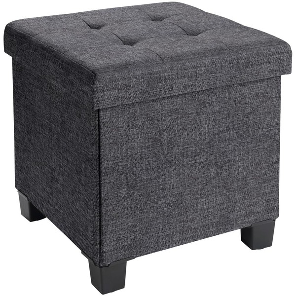 Ornavo Home 15 Inch Folding Storage Ottoman with Storage, Square Cube Linen Small Storage Ottoman Foot Rest Stool with Legs - Charcoal Gray