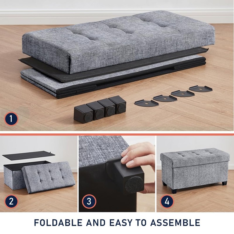 - FOLDABLE AND EASY TO ASSEMBLE - Need some extra space? Simply fold this ottoman and store it away until you need it again. And setting it up is a breeze - no tools required. Simply unfold the ottoman, place the base insert and place the lid on top. It’s that easy!
