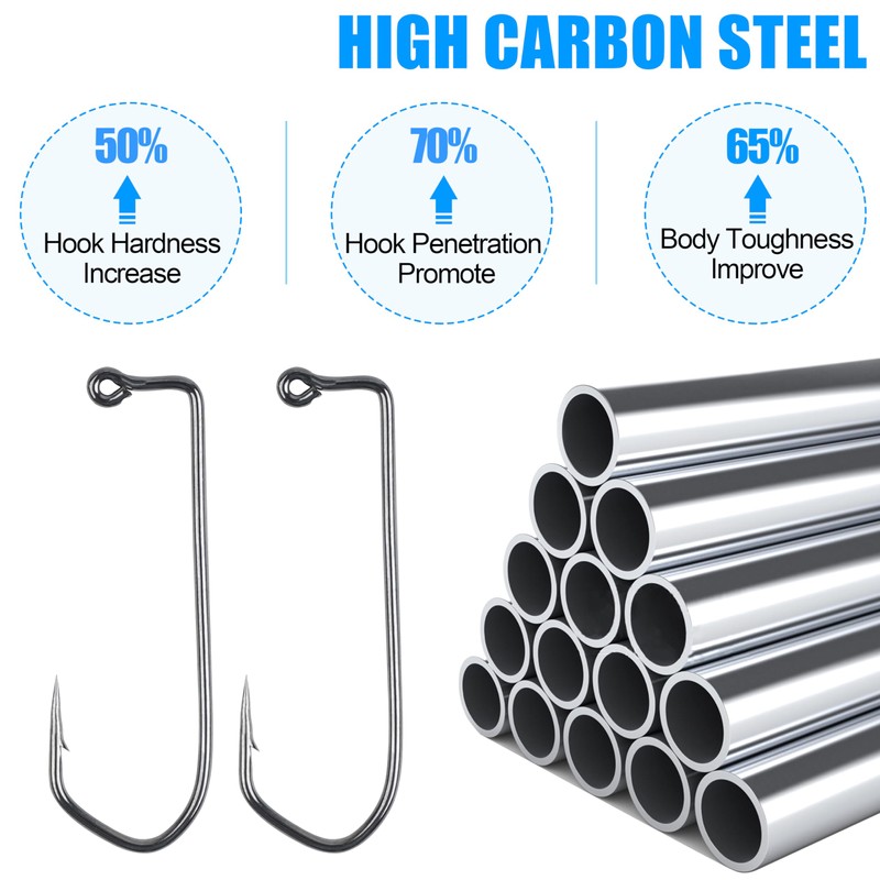 - 🐟【Durable Material】Made of high carbon steel material, the 90 degree jig hook is super sharp and durable, extremely strength, black nickel plated surface, which is high corrosion resistance to saltwater.
