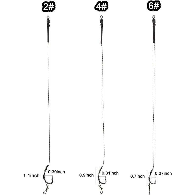 - No knot pulling: the hair rig assemblies come ready tied with swivel joints and hooks and save you a lot of work on the water. The flat head end is equipped with a rubber protective cover, which makes the fishing line bundle stronger and does not hurt the fishing line.