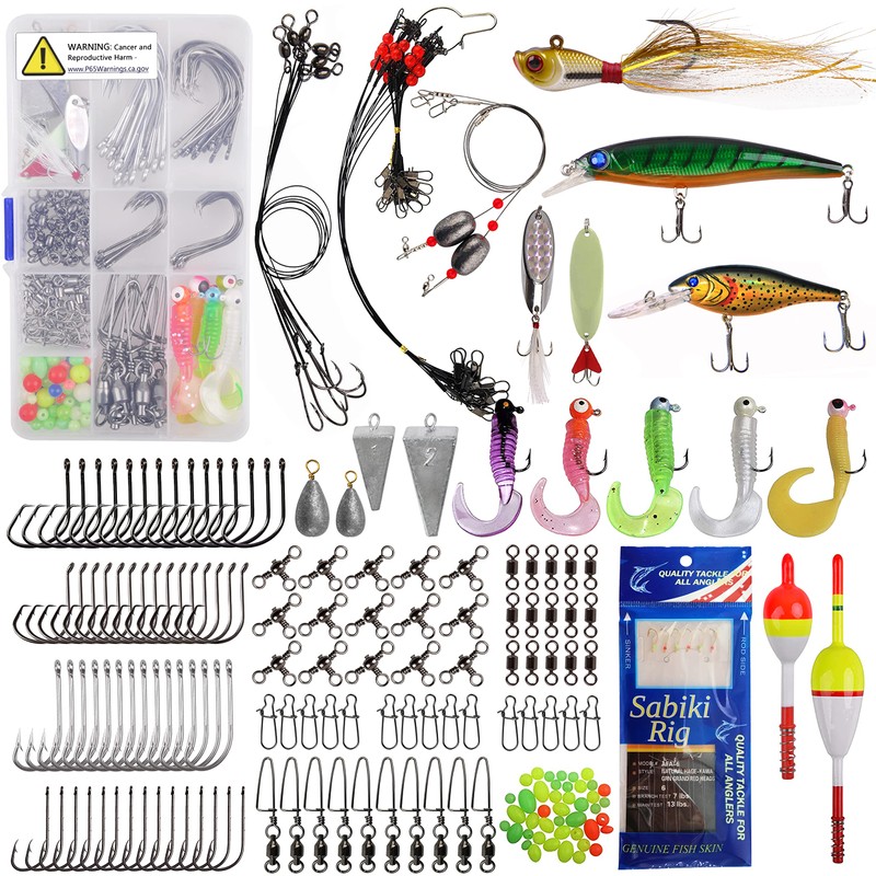 - 🐟 212PCS KITS INCLUDE: 12pcs wire leaders, 6pcs wire leader hook rigs, 2pcs egg sinker rigs, 1pcs bait fishing rigs, 1pcs minnow lure, 1pcs crankbait, 2pcs spoon lures, 1pcs bucktail jigs, 5pcs soft lure jigs, 15pcs baitholder hooks, 15pcs O'Shaughnessy hooks, 15pcs circle hooks, 15pcs octopus hooks, 4pcs sinker weights, 2pcs floats, 15pcs 3 way swivels, 15pcs rolling barrel swivel, 15pcs duo-lock snaps, 10pcs swivel with snap, 60pcs fishing beads.