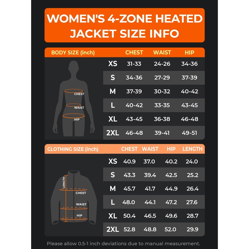 - Heat Across Body: Four carbon fiber heating elements generate heat across core body areas (collar, left and right-hand pocket, mid-back).