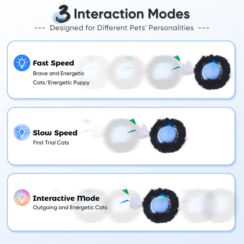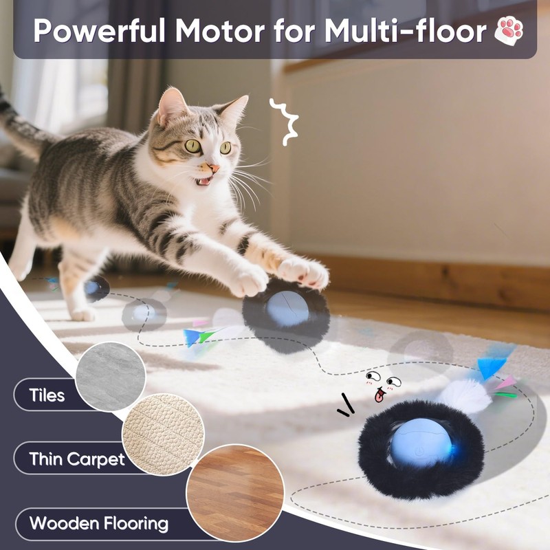 - 【CAT AFTER MOUSE GAME】: Interactive cat toys ball with a teaser feather tail is shaken or swung in front of the cat, imitate the random movement of small animals, emit sounds and LED flashing attract cats' attention, prompting cats to chase, jump and run. let cats experience a "natural" game, enhance the sense of reality and satisfaction. Through fast and random movements, helping cats consume excess energy and stay energetic and healthy.
