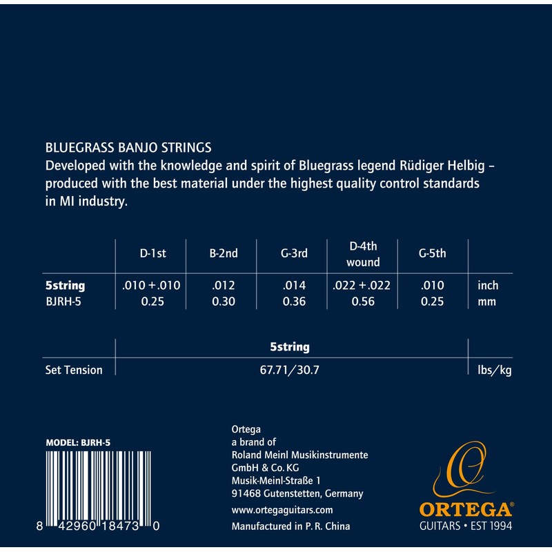 Ortega BJRH-5 Rüdiger Helbig Signature Bluegrass Banjo Strings - Medium