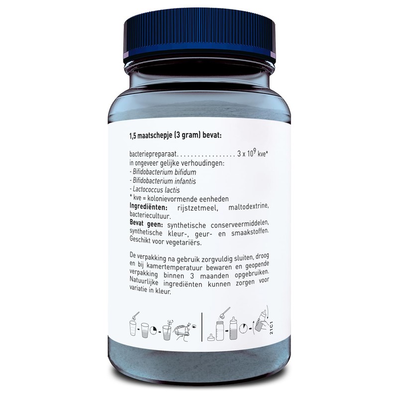 - Orthiflor Start for mother and child provides 3 g of powder (recommended daily intake for pregnant women and breastfeedings) 3 billion viable cultures of Bifidobacterium bifidum, B. Infantis and Lactococcus lactis.