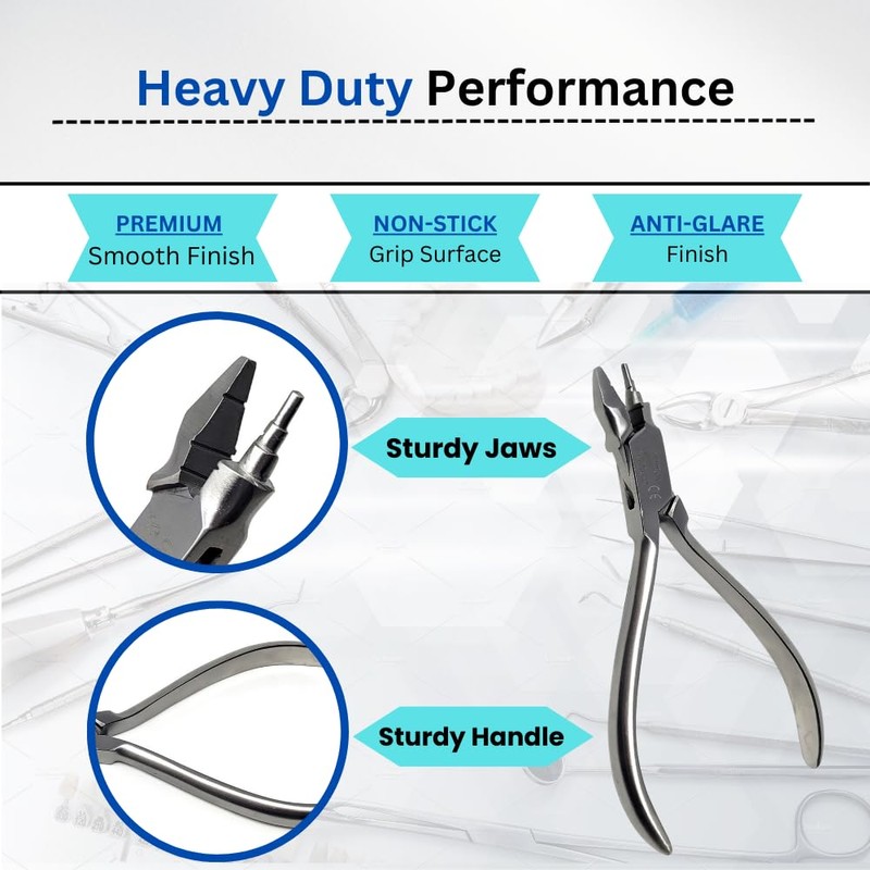 The composition of these pliers offers heavy duty performance without bending or breaking.Crafted to keep your hand steady allowing you to work with precision and accuracy. Extensively used by professionals and training facilities to demonstrate how to remove bands, brackets and adhesives. These hand-held instruments are designed to safely perform various dental tasks and reduce tissue trauma. Reliable and versatile tools that allow you to work with precision and accuracy.