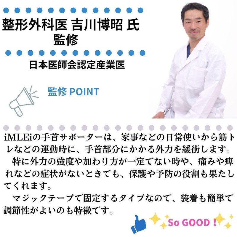 - (Fitness Trainer) Supervised by Noriyo, 40 years of experience in table tennis, 11 years of experience in fitness trainer. We also have wrist pain for tendonitis, and we have tried our supporters and wrist support, but we have supervised iMLEi's wrist support. The wrist band design does not interfere with your wrist range of motion so you can wear it daily during lessons and private occasions. Mouse pad works great as a wrist or finger supporter. It can be hand washed without removing, and it won't get stuffy, so you can feel comfortable all day long