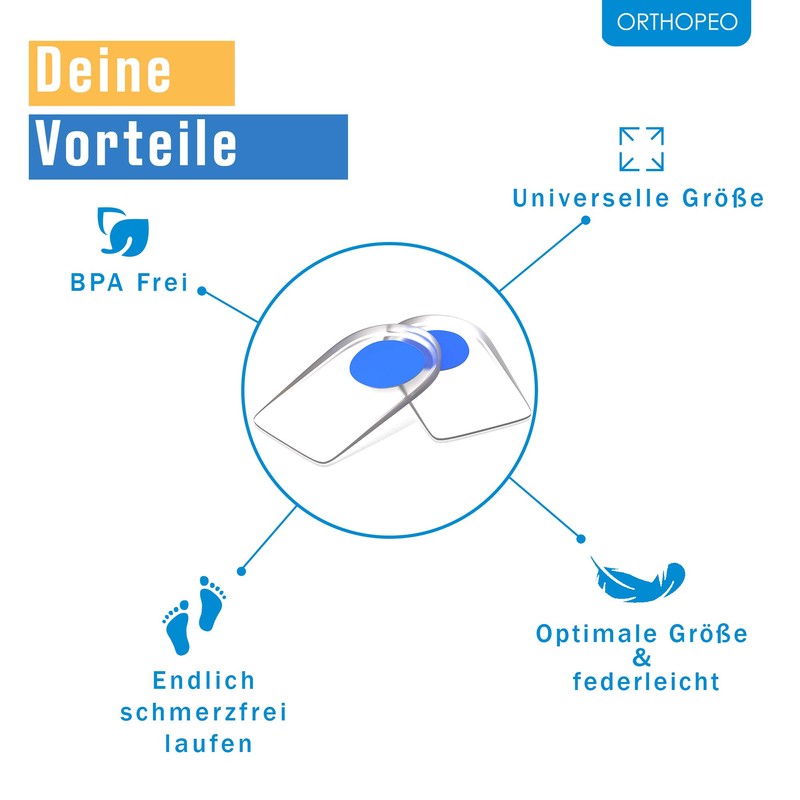 - ✔ SOFORTIGE SCHMERZLINDERUNG - Die innovativen Fersensporn Einlagen von ORTHOPEO entlasten spürbar die Füße und dämpfen sanft den Auftritt, so dass die Fersen effektiv vor Schmerzen geschützt werden. Zudem werden ihre Knöchel und Fußgelenke optimal geschont - Maximaler Komfort & sofortige Linderung von Fuß, Gelenk- und Fersenschmerzen!