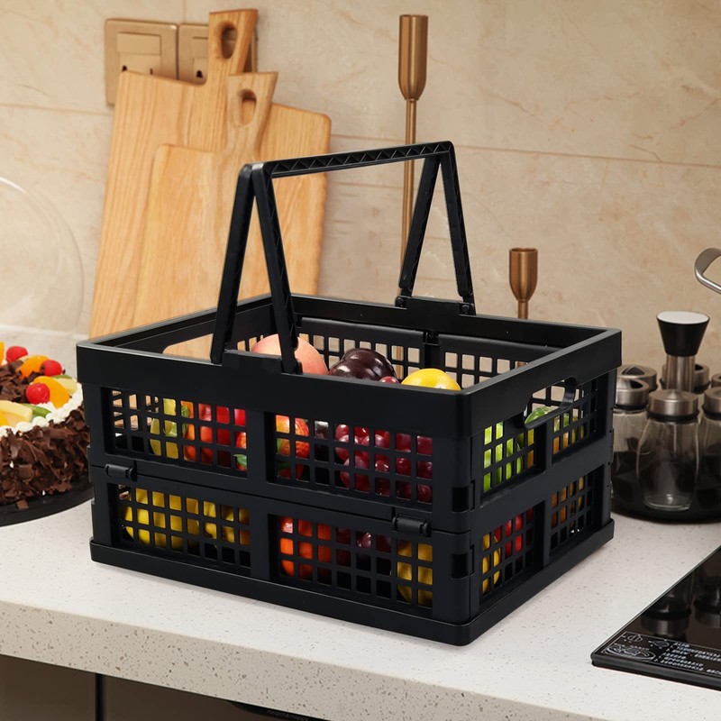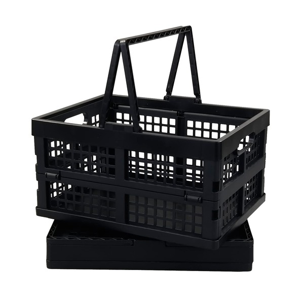 Ortodayes 2 Pack Folding Plastic Crate, Collapsible Shopping Basket with Handles