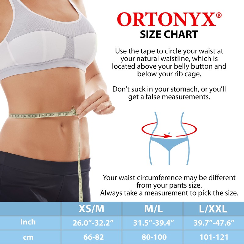 ORTONYX Lumbo Sacral Back Support - Ergonomic Design and Breathable Material - XS/M (Waist 66 cm - 82 cm) Black