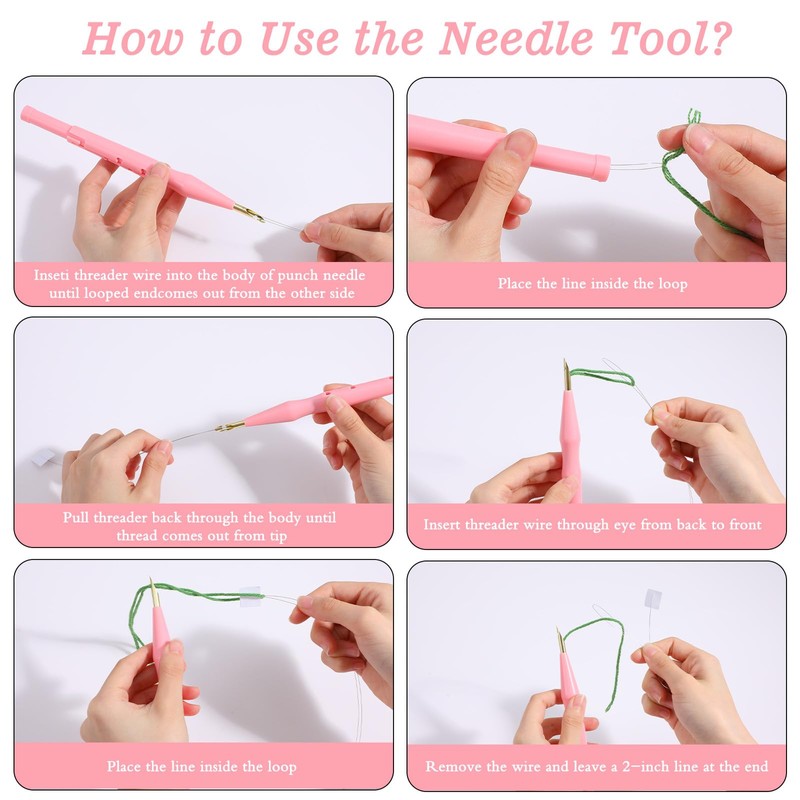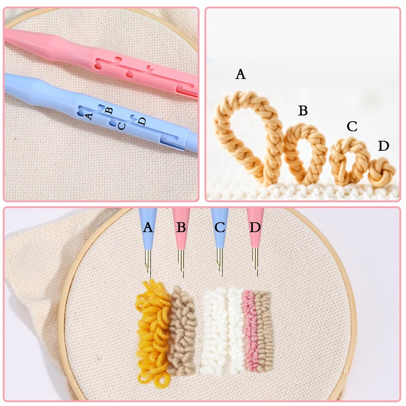 • [Easy to carry] This punch needle tool includes 2 blue and pink adjustable punch needles and 2 needle threaders, which are compact and easy to carry for creative projects on the go