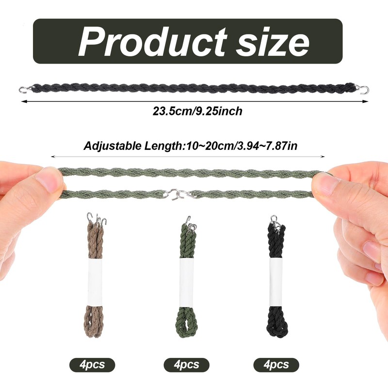 - [Pack Contents]: 12 pieces of trouser twists military ties in black, green, and khaki. Enough quantity for daily use, share with friends or family.