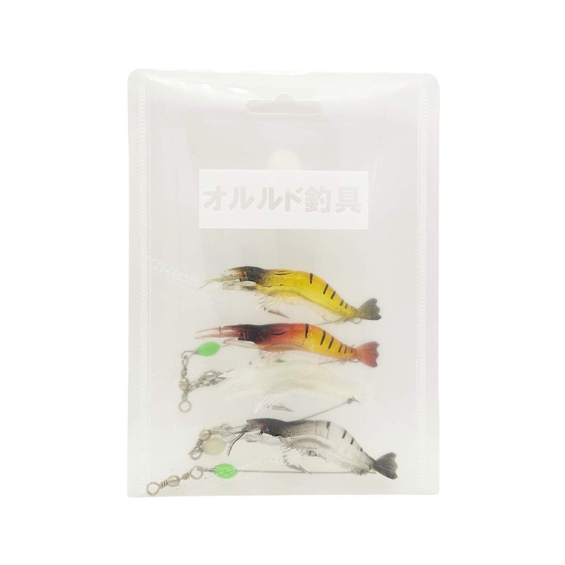 (Orurudo Fishing Equipment) Luminous Realistic Shrimp Worm 3.5 inch (9 cm) 6g 4 Color Set, Shrimp Worm Perfect for Night Fishing, Soft Lure, Shrimp Lure, Shrimp Worm, Perfect for Children and Women