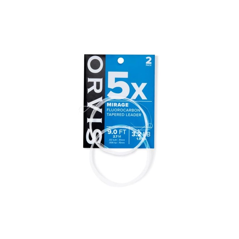 Orvis Mirage Knotless Trout Leader - Quick-Sinking, Extrusion-Tapered Pure Fluorocarbon Leader (2PK), 9 Foot Length - 1X