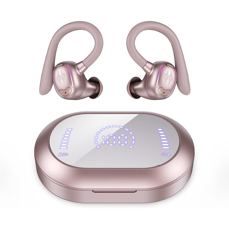ORZ Audífonos inalámbricos, Bluetooth 5.3, Hi-Fi Estéreo Cascos, Pantalla LED, Llamadas Nítidas con Micrófono, cancelación de Ruido, 50H Tiempo de Juego, IP7 Impermeable, Deportivos (Rosa)