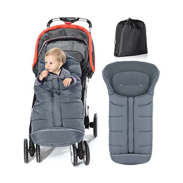 - EASY & SAFE TO USE: The Stroller footmuff with 2 lines can be pulled the lines to tighten the hood to protect your little's head from cold air. The baby bunting bag is designed with a middle zipper to help your baby get in & out easily.