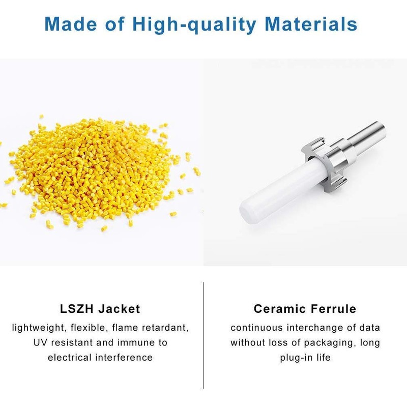- ★ Specifications: PVC jacket, diameter 0.08 inches (2.00 mm), bend radius minimum, 2.0 inches (5 cm), ceramic ferrule, UPC/PC polishing