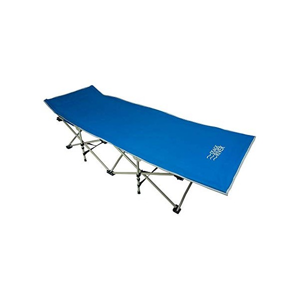 - ULTRA LIGHTWEIGHT - This camping cot is designed with tubular carbon steel legs that have been factory tested at 300 pounds; flat plastic feet prevent the cot from sinking in soft soils; comes with a carry bag.
