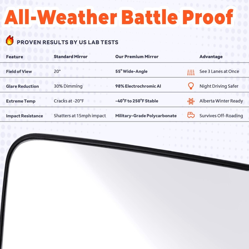 - 【Anti-glare mirror surface】Aspherical curvature expands blind spot coverage by 30% vs. flat OEM glass, reducing lane-change accidents,Anti-glare electrochromic layer auto-dims high-beam headlights at night—eliminates 98% glare without manual adjustment.