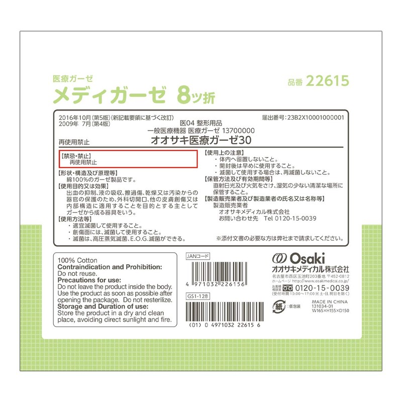 Osaki Medical Medical Gauze, 8 Folds, 150 Sheets