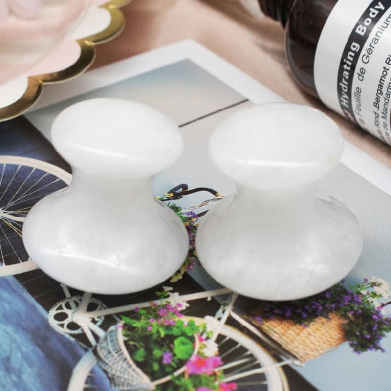 OSALADI 2Pcs Gua Sha Tools Quartz Mushroom Face Massager Health Jade Stones Mushroom Scraping Massage Tool for Women Home Spa, White