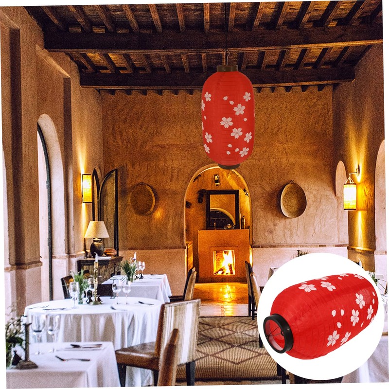 OSALADI Cherry Blossoms Silk Lantern Japanese Style Decorative Hanging Lamp 10 Inches Red Lantern for Party Decor