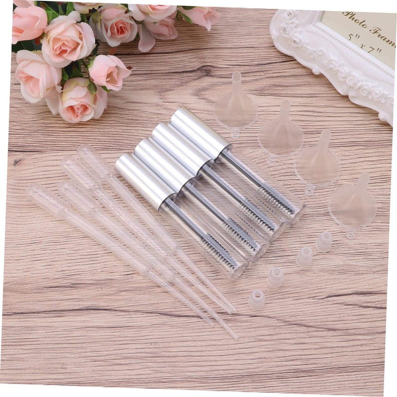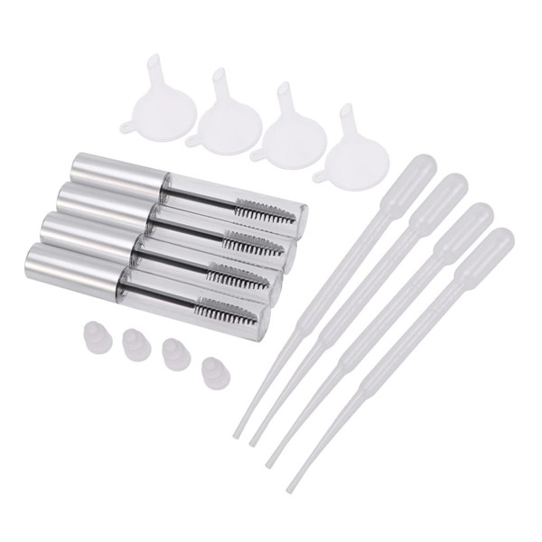 container - Material: Plastic- Size: About 11x1x1cm- DIY your own mascara using ingredients of your choice with these easy to use tubes.Eyelash Cream Bottle A travel essential for both men and women.eyelash for eyelash extensions - storing some of your mascara, eyelash cream and so on.Eyelash Brush Tube - Silver lid and transparent body for you to see the quantity remaining in container clearly.Empty Eyelash Tube Sincerely hope that you can understand! Thank you!.Empty Eyelashes Bottle They are storing some of your favourite Perfume/Aftershave/Makeup Remover in a smaller container without having to take the whole bottle with you.Mascara Tube Container Warm Tip: Dear buyer, Due to lighting effect, monitor's brightness, manual measurement and etc, there could be some slight differences in the color and size between the photo and the actual item. Features - Color: As shown. The item is 4pcs Empty Eyelashes Bottle with 4pcs funnels and 4pcs Pipettes