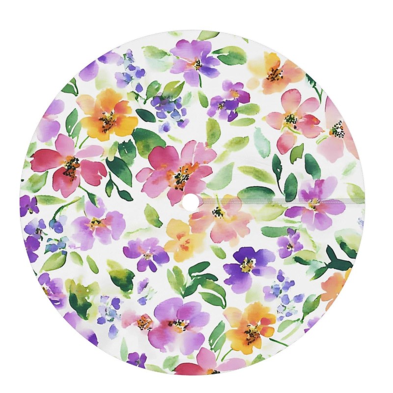 OSAM SPACE Outdoor Tablecloth with Umbrella Hole, Round Elastic Fitted Table Cloth with Invisible Zipper,Watercolor Flowers Picnic Patio Table Cover 36-44in