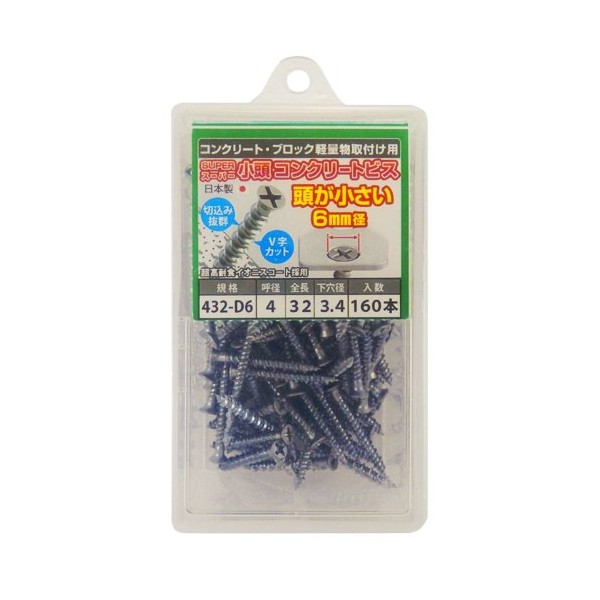 Osato 432-D6 Super Small Head Concrete Screws, Head Diameter 0.2 x 0.2 x Length 1.3 inches (6 x 4 x 32 mm), Pack of 160