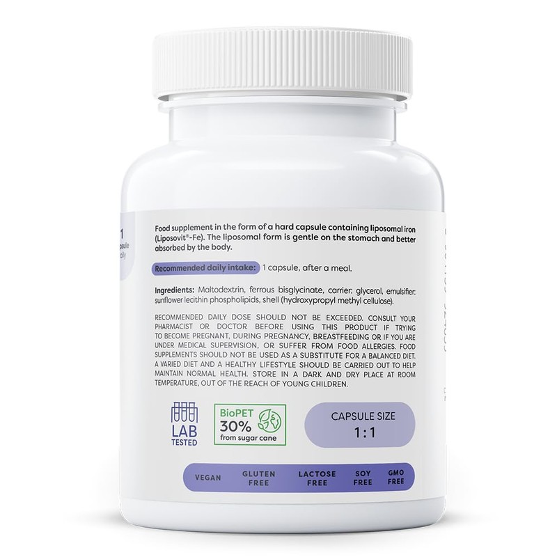 OSAVI Osavi Liposomal Iron 20 mg C 60 Vegan Capsules | Liposomal Iron (Liposovit?CFe) for Enhanced Absorption | Supports Red Blood Cell Formation, Energy Metabolism, and Immune Function