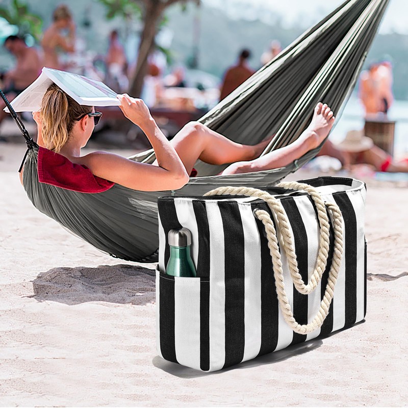 - Large Capacity - oscaurt beach bag tote can hold 4-6 large beach towels, extra clothes, shoes, sunblock, snacks, water bottles, beach toys, etc. Recommend for a beach vacation, swim bag, pool bag, etc.