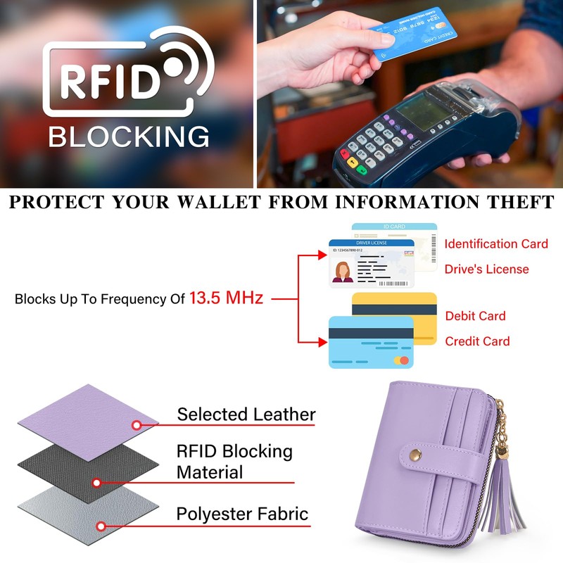 - RFID Blocking Technology: The ladies wallet is equipped with advanced RFID-blocking technology that prevents digital thieves from accessing the sensitive information stored on RFID chips, keeping your personal data secure while shopping, traveling, or going about your day. Stay secure and worry-free wherever you go