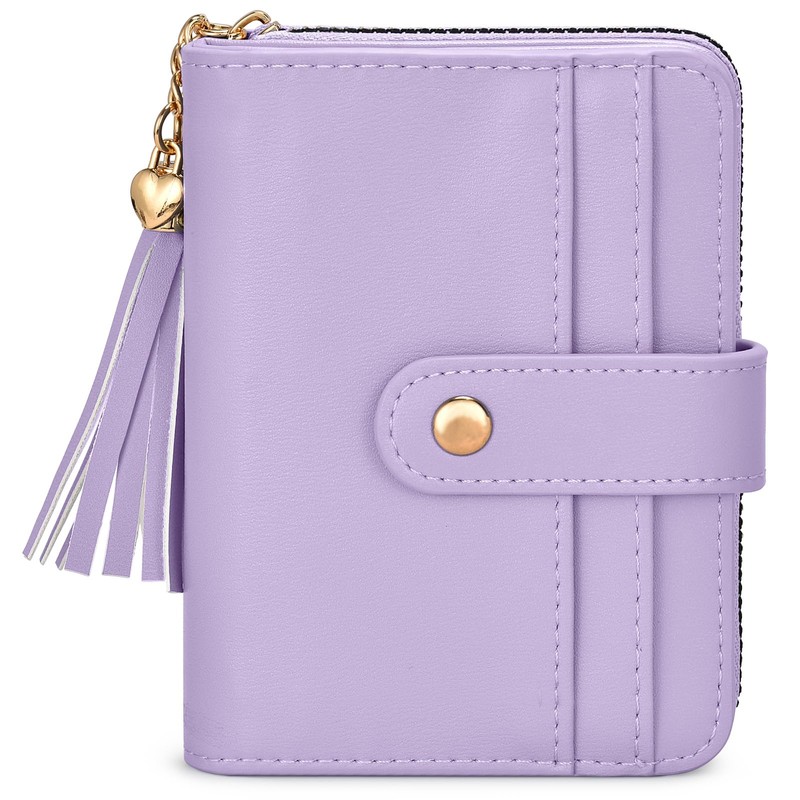 - Small But Roomy: This small womens wallet (4.92" x 3.74" x 1.18") offers 8 card slots, 1 ID window, 1 large cash compartment, and a side tassel zipper coin pocket. The exterior also features two card slots for easy access to frequently used cards. It can hold all your essentials without the bulk
