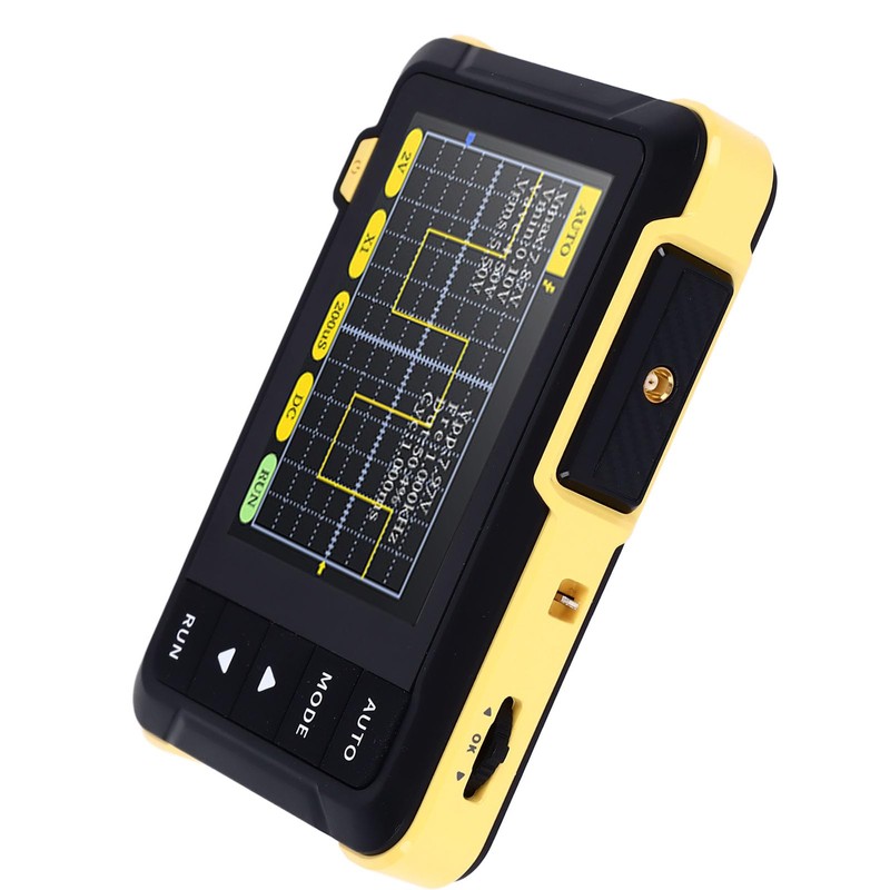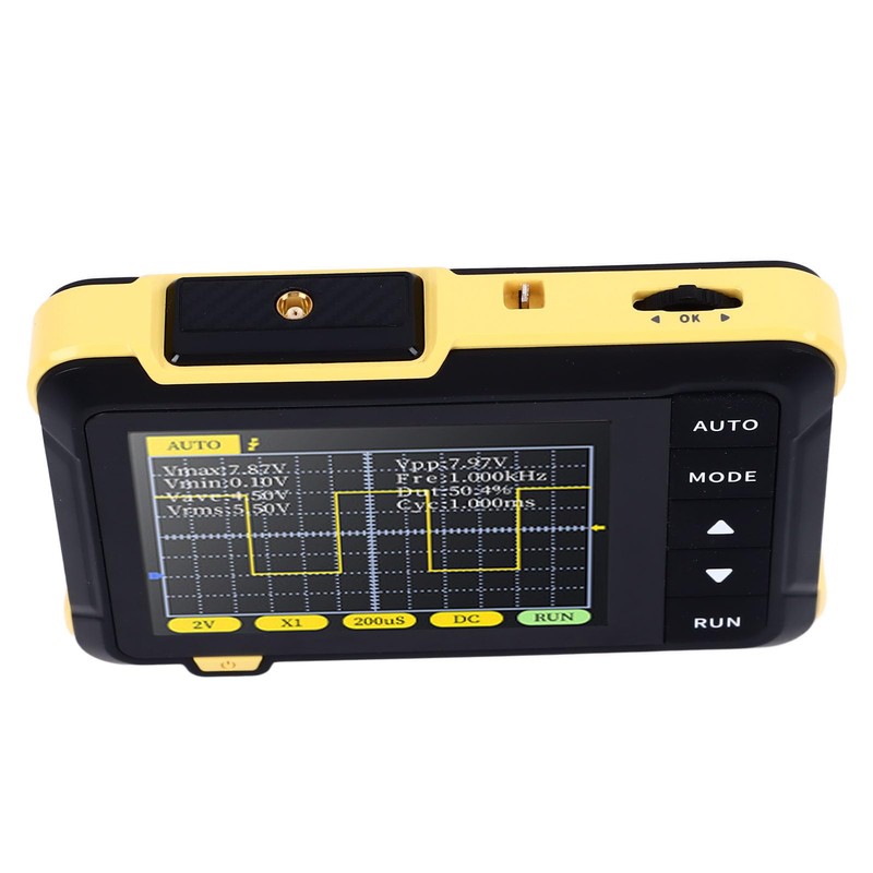- OSCILOSCOPIO PORTÁTIL: El tamaño compacto le permite llevarlo consigo, haciéndolo pequeño y práctico. ¡ tamaño de la palma de la mano, cuerpo ultra delgado y liviano, eliminando el problema de equipos pesados y difíciles de transportar!