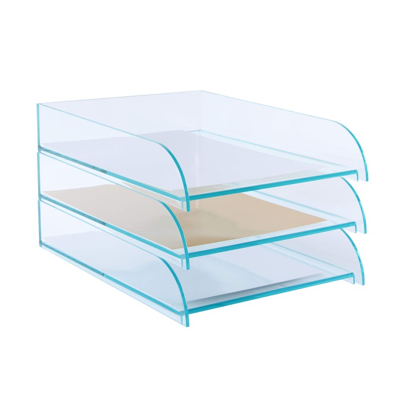 - Fabricated from stunning glass look acrylic, this stackable letter tray has bevelled edges so that each tray fits neatly onto the next without the need for risers.
